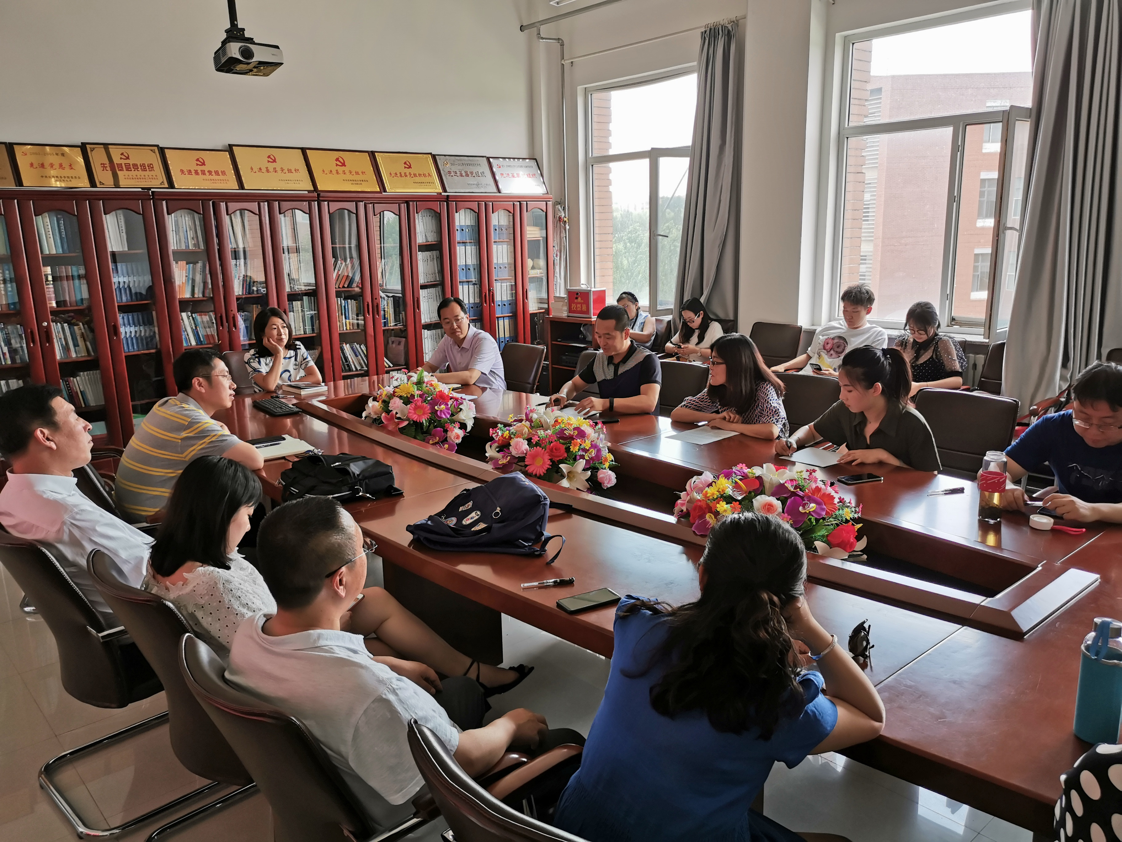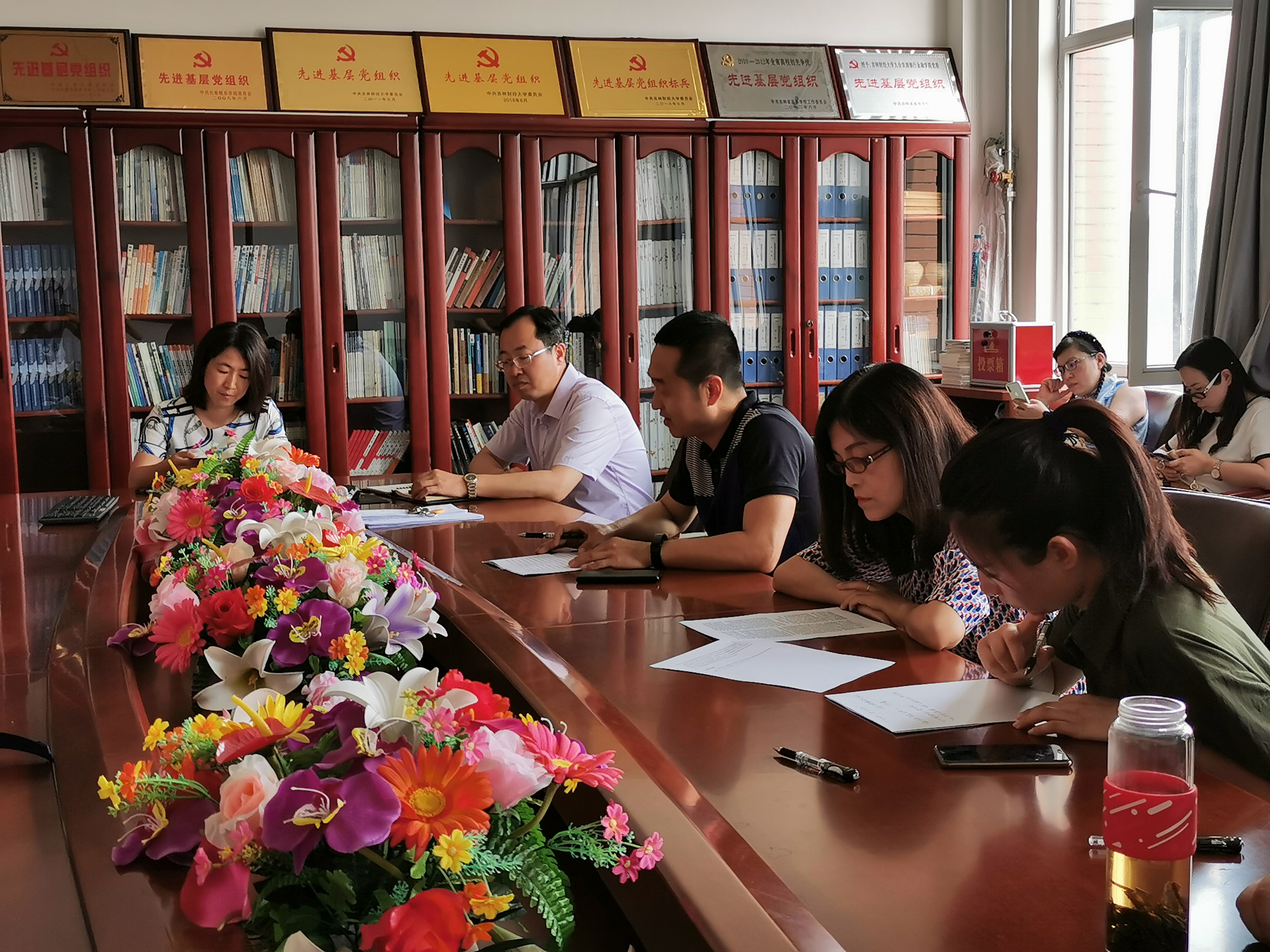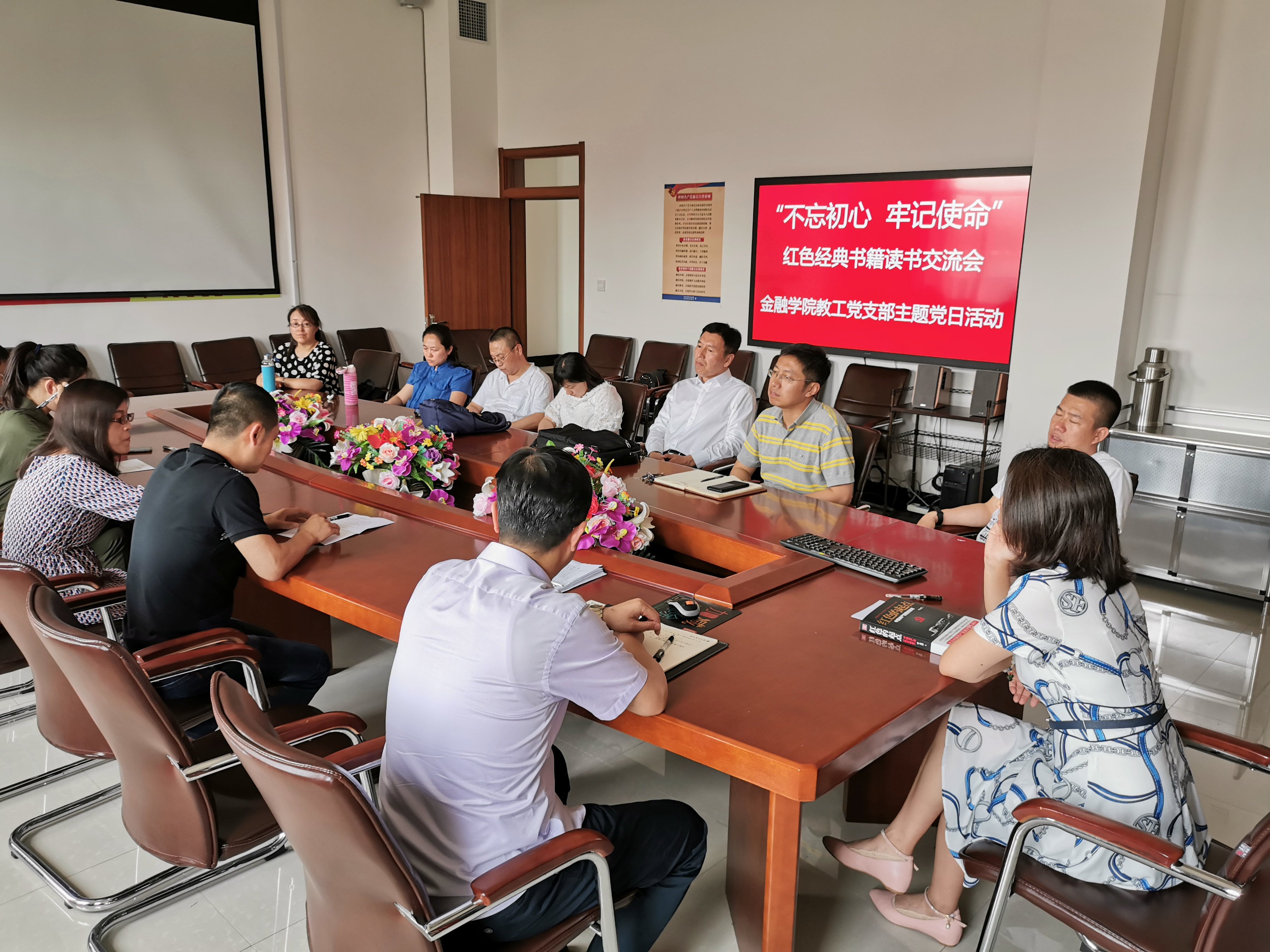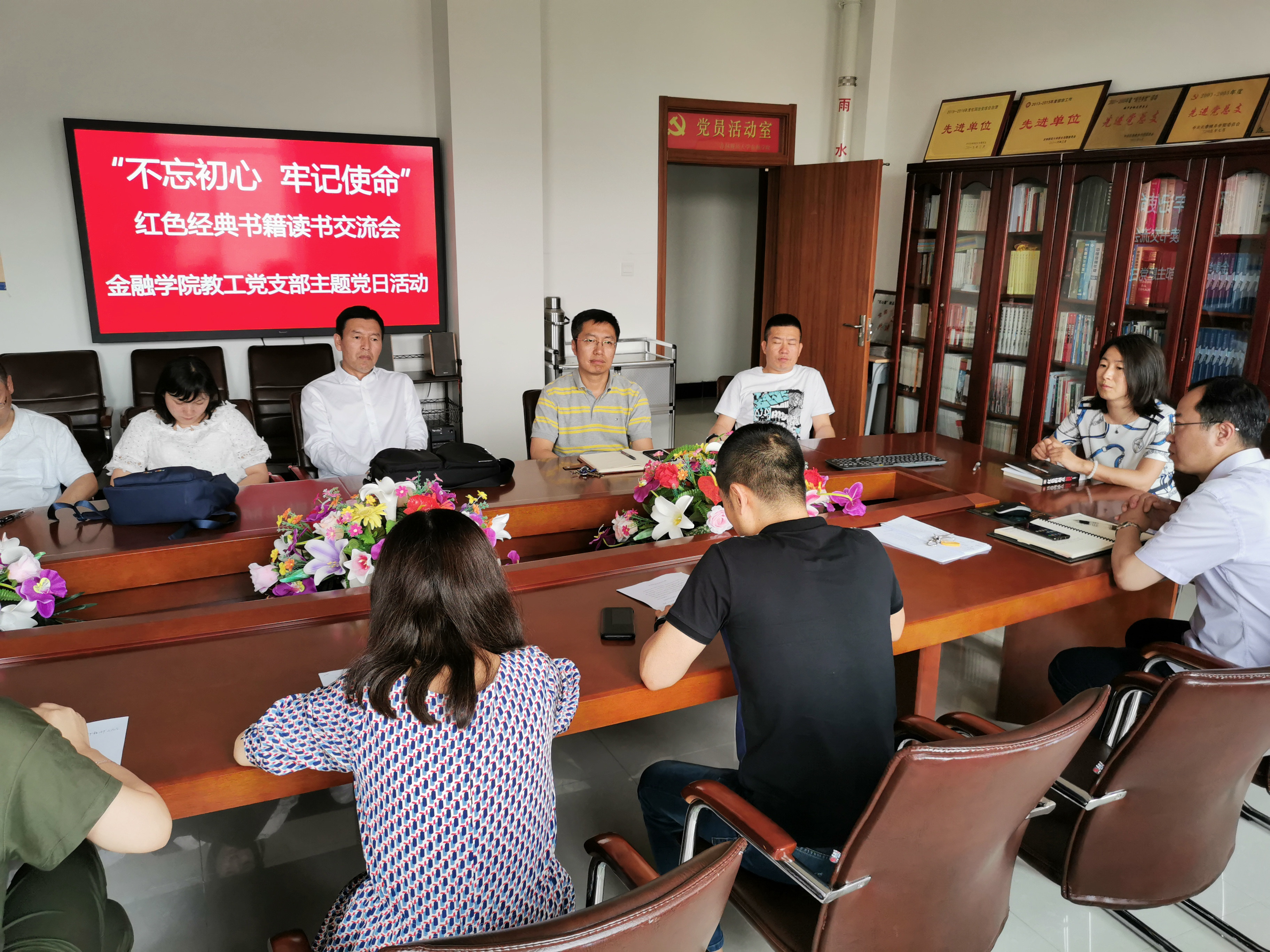 本网讯 为深入学习贯彻党的十九大精神和习近平总书记“爱读书、读好书、善读书”的要求,进一步推进“两学一做”学习教育常态化制度化,引导党员教师大兴读书之风,2019年6月27日,做爱自拍 教工党支部在做爱自拍 会议室组织开展了“不忘初心 牢记使命——红色经典书籍读书交流会”主题党日活动。