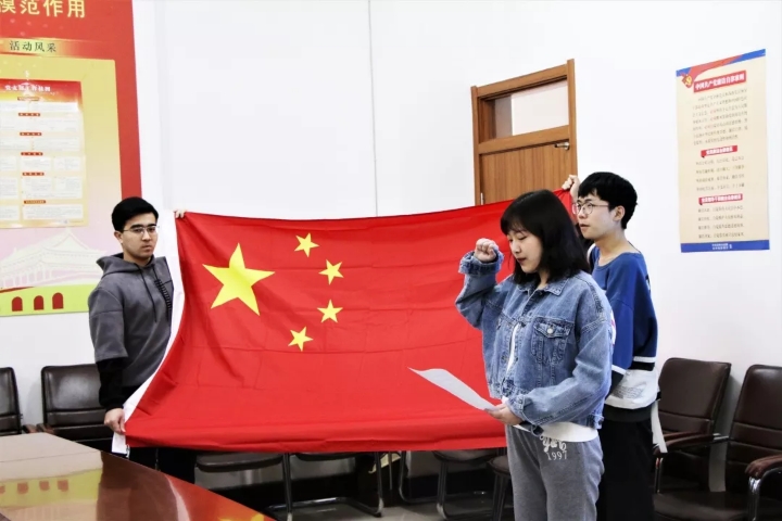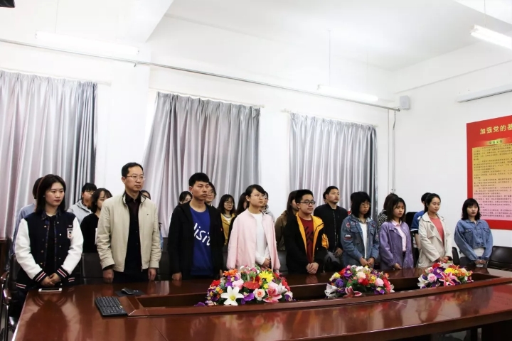 组织青马工程班学员代表在学院党员活动室收看了纪念五四运动100周年大会的现场直播并举行青春宣誓活动。学院党委书记陈德民也与学员代表一起观看大会直播并庄严宣誓。