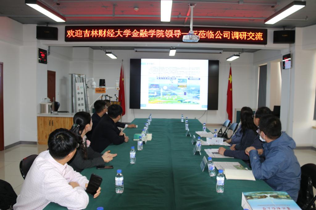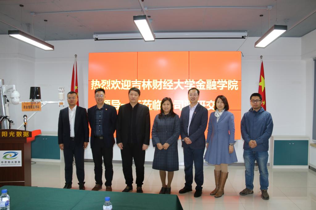 为全面提高做爱自拍 学科建设水平,扩大校企合作交流,促进产学研有机结合,推动学院高质量发展,10月7日,九台农商银行做爱自拍 院长唐亚晖、书记陈德民、副院长刘淼、保险系教师李新光赴吉林省中农阳光数据有限公司考察调研。