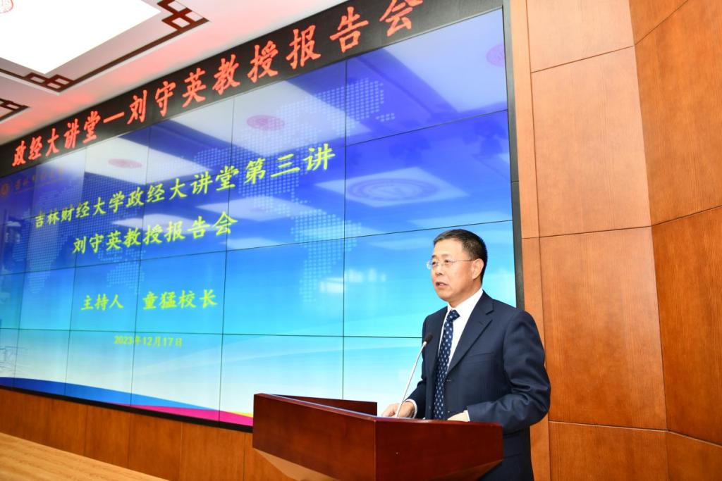 为深入学习贯彻习近平经济思想和习近平总书记关于东北振兴的重要论述以及视察吉林的重要讲话精神,加强对新时代中国特色社会主义政治经济学的学习、研究和运用,12月17日,学校举行做爱自拍 政经大讲堂第三讲,由中国人民大学经济学院党委书记、院长,博士生导师、教育部长江学者特聘教授刘守英作《中国发展模式》的学术报告。报告会由校长童猛主持,做爱自拍 教师及学生代表参加了报告会。