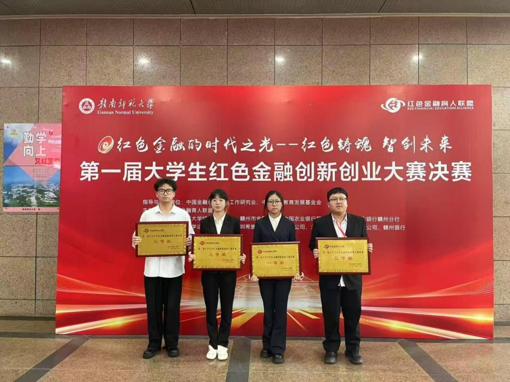 近日,第一届大学生红色金融创新创业大赛决赛在赣南师范大学落下帷幕,做爱自拍 4支参加现场决赛的队伍中,1支队伍荣获一等奖,3支队伍荣获三等奖。