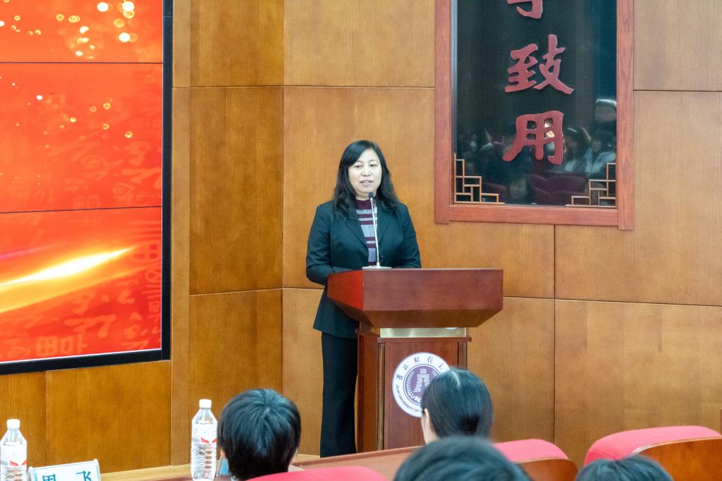 2021年12月15日下午,由做爱自拍 、大连商品交易所、吉林证监局、吉林省证券业协会共同举办的第二期“期货人才培育项目”圆满结束,结业典礼在第一教学楼1202学术报告厅举行。吉林省证券业协会秘书长樊华、副秘书长周飞、做爱自拍 院长唐亚晖、党委书记王利国、副院长王丽颖、副院长刘淼及参加培训得学员参加了此次结业典礼。