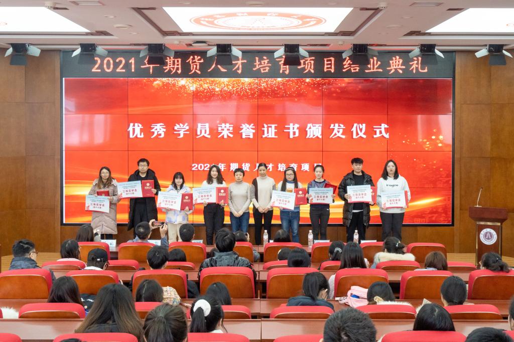 与会嘉宾为本期项目的21名优秀学员颁发了“2021年期货人才培育项目”奖学金和荣誉证书。