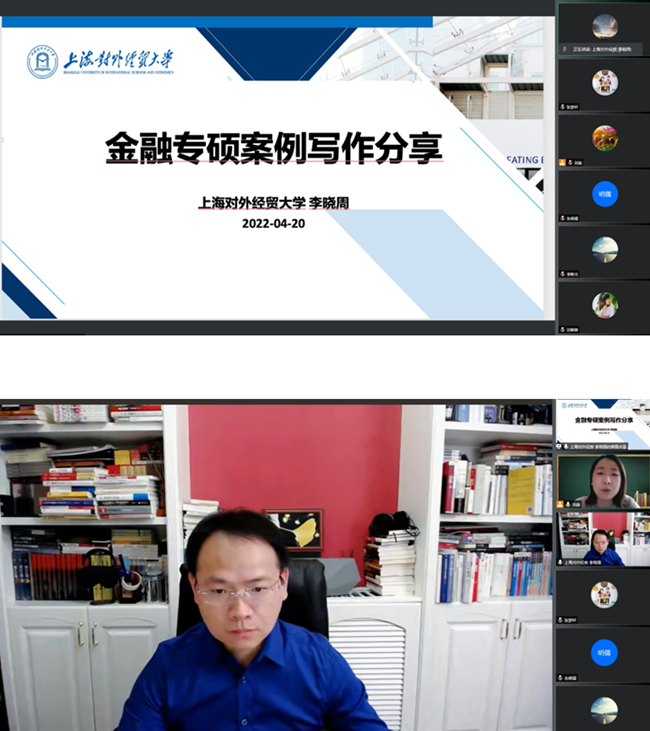 李晓周老师首先从案例选题出发,从金融专硕案例需具有时效性这一特点切入,将2021年获奖的144个选题进行归纳和剖析,把新老热点问题、相似问题、冷门问题等选题内容分成了四个层次,逐个做了深入解读;在此基础上,将“引言”、“叙述”、“提问”和“写什么”“写给谁”“怎样写”这两条线共同推进,详细介绍了整体案例的设计思路;并以选题和设计为积淀,引入到案例本体、教学手册具体的写作方法,将自己的经验无私分享,为老师们讲述了如何避开陷阱、教学手册的撰写要点等内容;重点讲述了评审的规则和相应的要求。最后,李老师不仅将整个案例撰写从兴趣、管理、激励三个角度做了自己的经验总结,更是将自己获奖的案例进行了梳理,让老师们更直观的抓住案例完成过程。主讲部分结束后,李老师和与会教师展开了热烈的交流讨论,详细认真地解答了老师们提出的问题。