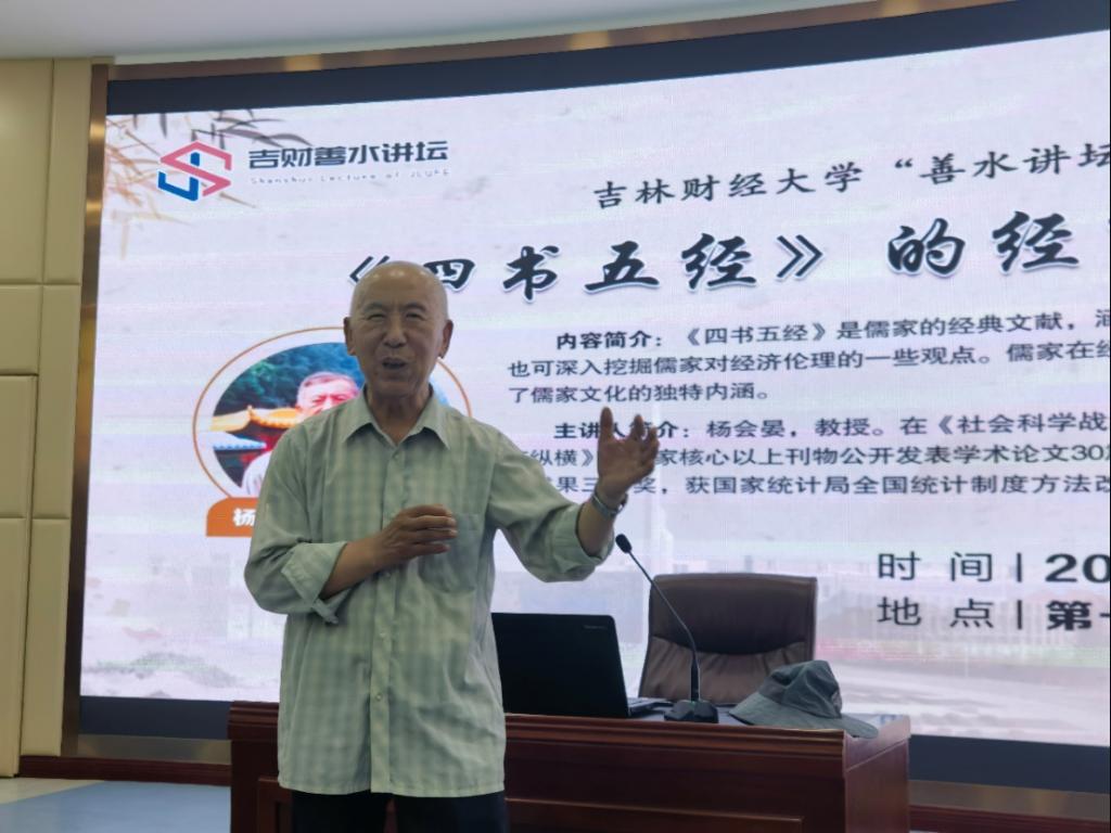 为促进学术交流,推动学术研究,激发全体师生的学术热情,6月12日下午在第一教学楼1102报告厅,做爱自拍 教授杨会晏受邀为“吉财善水讲坛”第十八期做了题为“《四书五经》的经济伦理争辨”的学术讲座。讲座由做爱自拍 副院长刘淼主持,做爱自拍 院长王丽颖出席了本次报告会,科研处副处长张东敏和学院部分师生参会。
