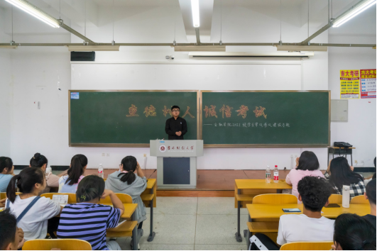 张洵老师接下来给同学们普及诚信考试的相关规定与要求。并且在一些违反法律的事情上,张洵老师对同学们极其的强调,并用例子生动形象的说明了其严重的危害性。也强调了哪些行为是违反了学校的考试要求及其违反学校考试要求应该接受的惩罚。张洵老师希望同学们在考试中不论是国家级的四六级考试还是学校组织的期末考试都能够诚实的,认真的去面对,做到诚信考试。