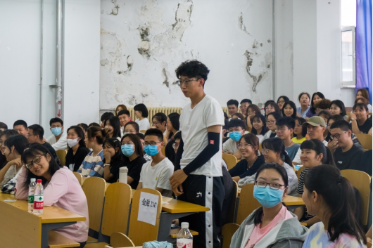 张洵老师紧接围绕学校的一日规范制度方面展开话题,给大家对早操,晚自习,查寝,晨读,综测,学生团体工作,请假方式,上课要求,学校的规章制度等方面进行了详细的说明。他引导同学们思考规划自己的学习生活,遵守学校学院的规章制度,鼓励大家积极面对大学生活,努力学习,积极向上。