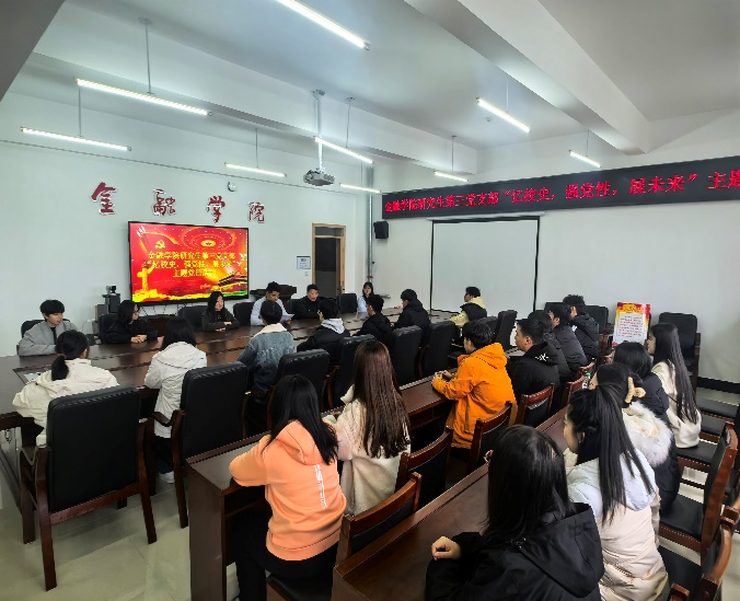 活动第三项,在双创楼B313室开展理论学习和讨论,此部分由邢伟罡老师主持,邀请红色金融宣讲团宋雨函同学领学红色金融发展史。首先,全体党员先后学习了“习近平总书记关于经济建设重要论述”和红色金融史并有由邢伟罡老师传达了全国教育大会精神。随后,全体党员围绕参观感受及理论学习并结合自身情况开展了深刻的讨论。