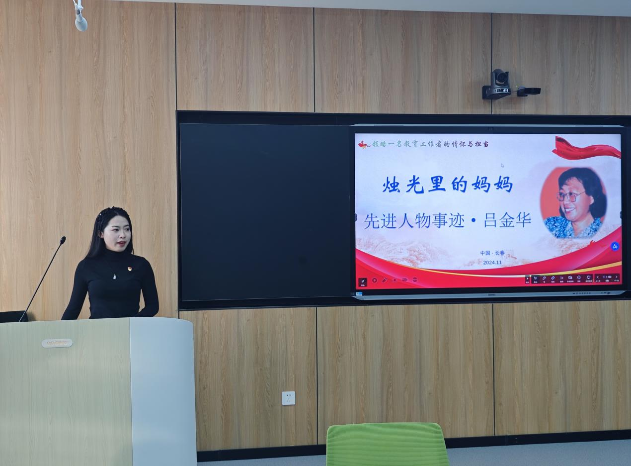 黄冬旭同志以“妈妈老师”吕金华生平事迹为重点,向同志们介绍了吕金华老师一生勤勉尽责,在教师的岗位上始终坚持,做到因材施教、体恤同学,将她的热情都奉献给了三尺讲台。她为了党的教育事业和新闻事业,殚精竭虑、任劳任怨、呕心沥血、忘我工作,展现了一名共产党人的优秀品质,塑造了人民教师的光辉形象,她的故事和精神将永远激励着后来者。