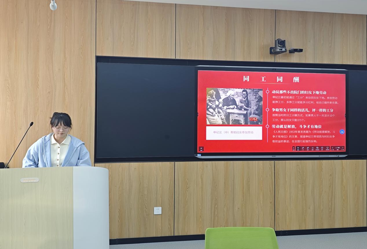 活动第三项:领学党员赵欣然以及黄冬旭同志通过播放视频、展示图片以及结合文字材料等方式,对申纪兰同志、吕金华“妈妈老师”这两位先进学习模范展开详细介绍。